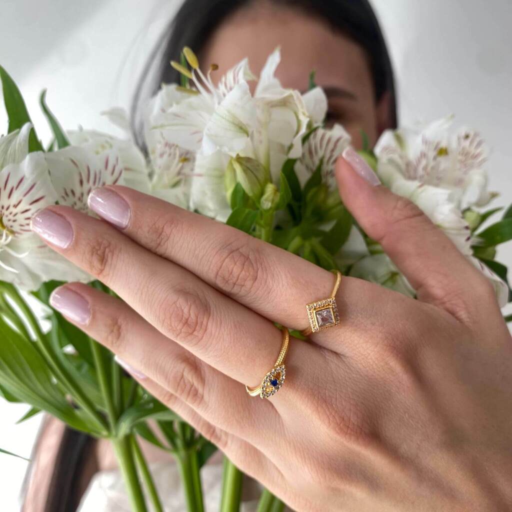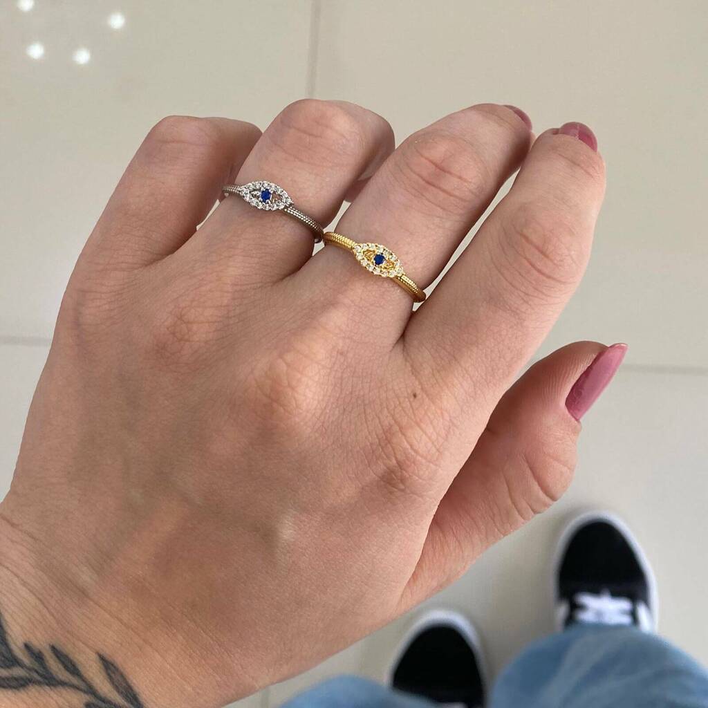 O Anel Regulável Olho Grego é um acessório básico e essencial. Uma peça coringa para o dia a dia, que combina com qualquer look e ocasião.